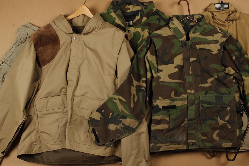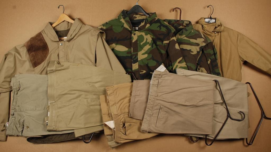 Lot of 5 men’s Safari pants, 36-30 size by Cabela’s and 4 Safari jackets; medium size. Est.: $100-$200.