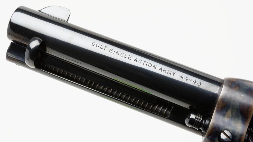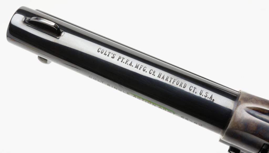 ** Colt 3rd Generation SAA revolver, .44-40 caliber, 4.75” barrel, S/N SA97558, blued and case hardened finish, ivory grips in overall like new condition! Est.: $1,000-$2,000.