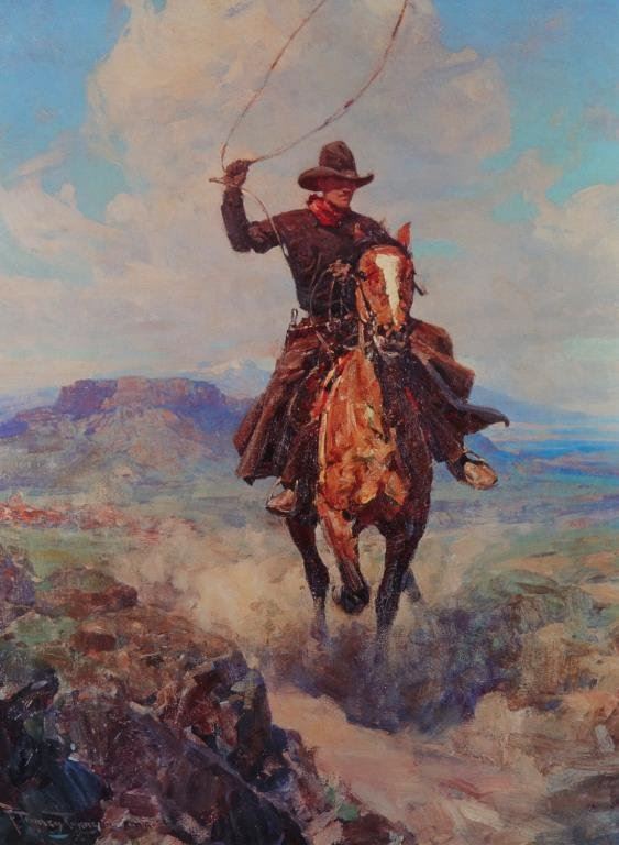 Framed color print from the estate of famed Western artist, Frank Tenney Johnson (1874-1939) entitled “On the Open Range” (1936), approximately 25” x 18.5” overall with Certificate of Authenticity. Est.: $75-$100.