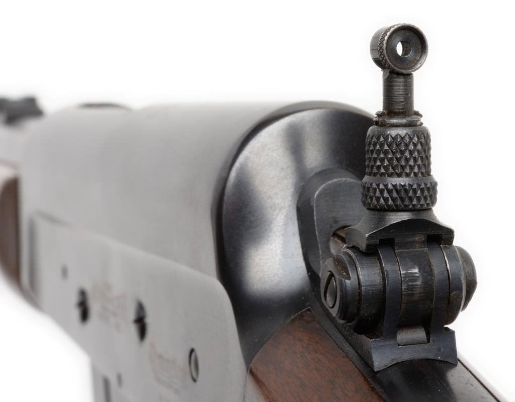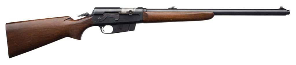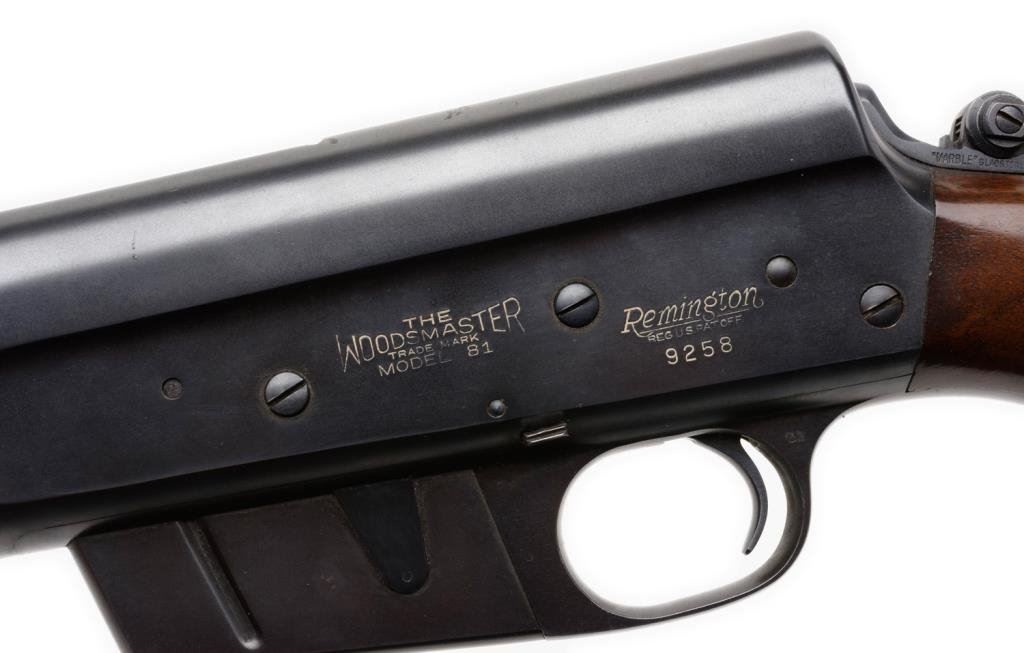 **Remington Model 81 semi-automatic rifle, .35 REM. caliber, 22” barrel, S/N 9258, blued finish, wood stocks, in overall very good + condition. Est.: $300-$600.