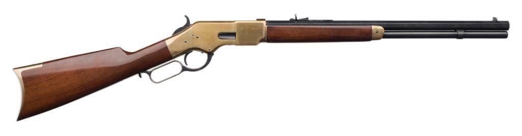 *Reproduction Model 1866 Winchester short rifle in .44-40 caliber, by Cimarron, S/N W39107; 20” barrel, fine to excellent condition showing only slight use. Est.: $500-$1,000.
