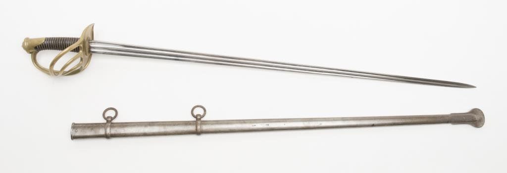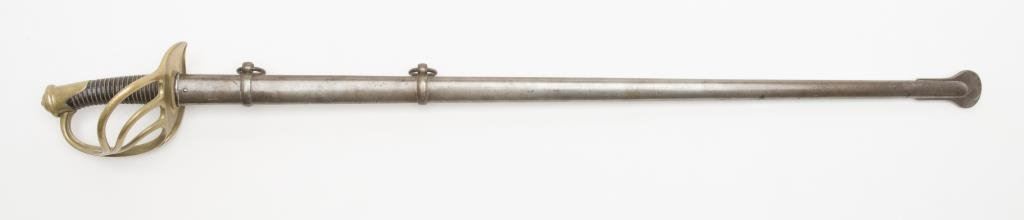 French heavy Cavalry sabre model 1854 dated 1873 by Chateaulerault Arsenal. Very good condition with scabbard. Est.: $600-$1200