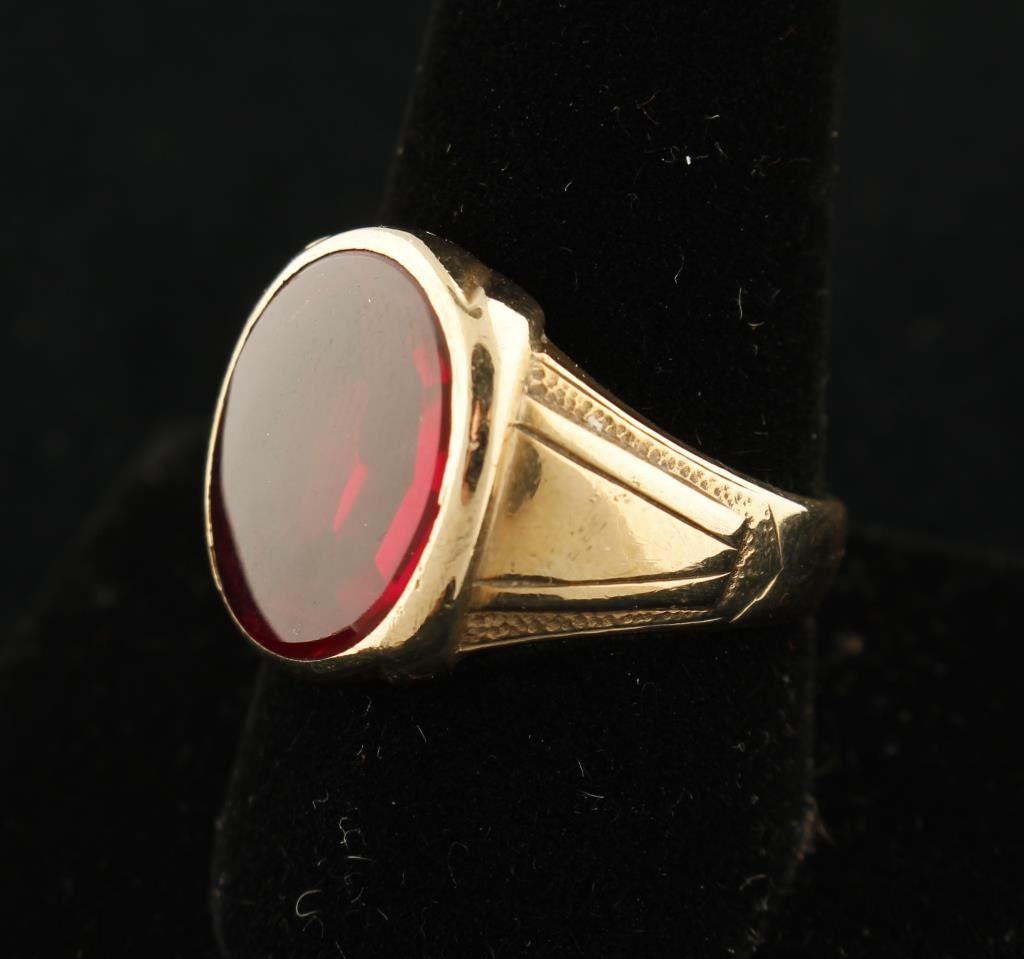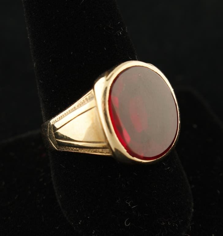 Lot 3191 10K gold man’s ring with under faceted and smooth polished top garnet. Siz