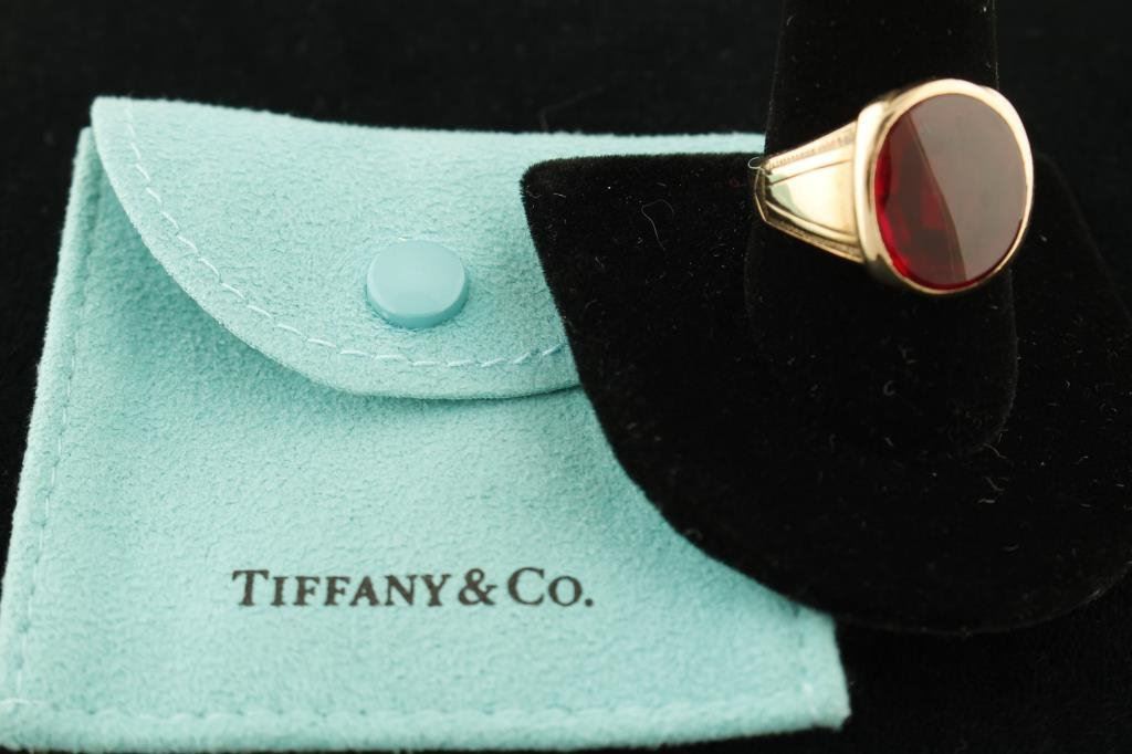 10K gold man’s ring with under faceted and smooth polished top garnet. Size 10. Est.: $250-$500