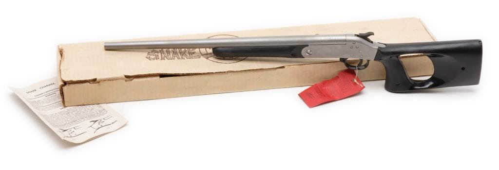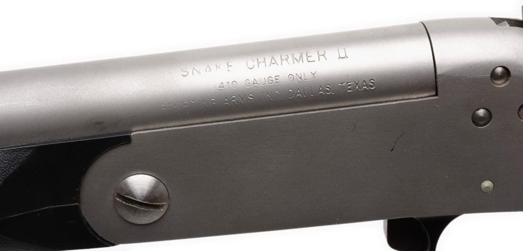 *Sporting Arms, Inc. Snake Charmer II single shot top break shotgun, .410 gauge, 18” barrel, S/N 0553, satin finish to metal, composite butt stock in like new condition with instructions and factory cardboard box. Est.: $150-$300.