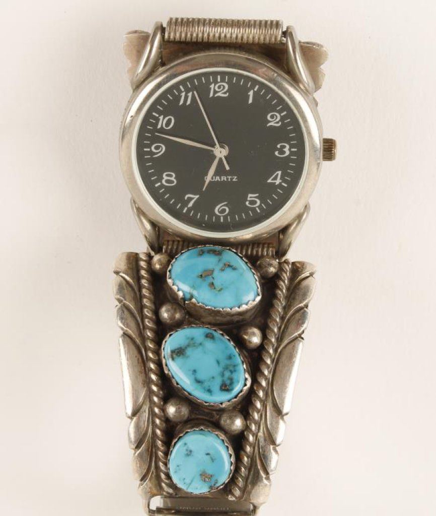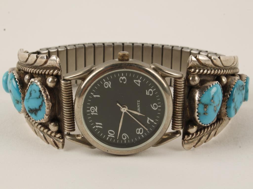 Quartz wrist watch with turquoise and silver expandable watch band; working at time of description. Est.: $100-$150.