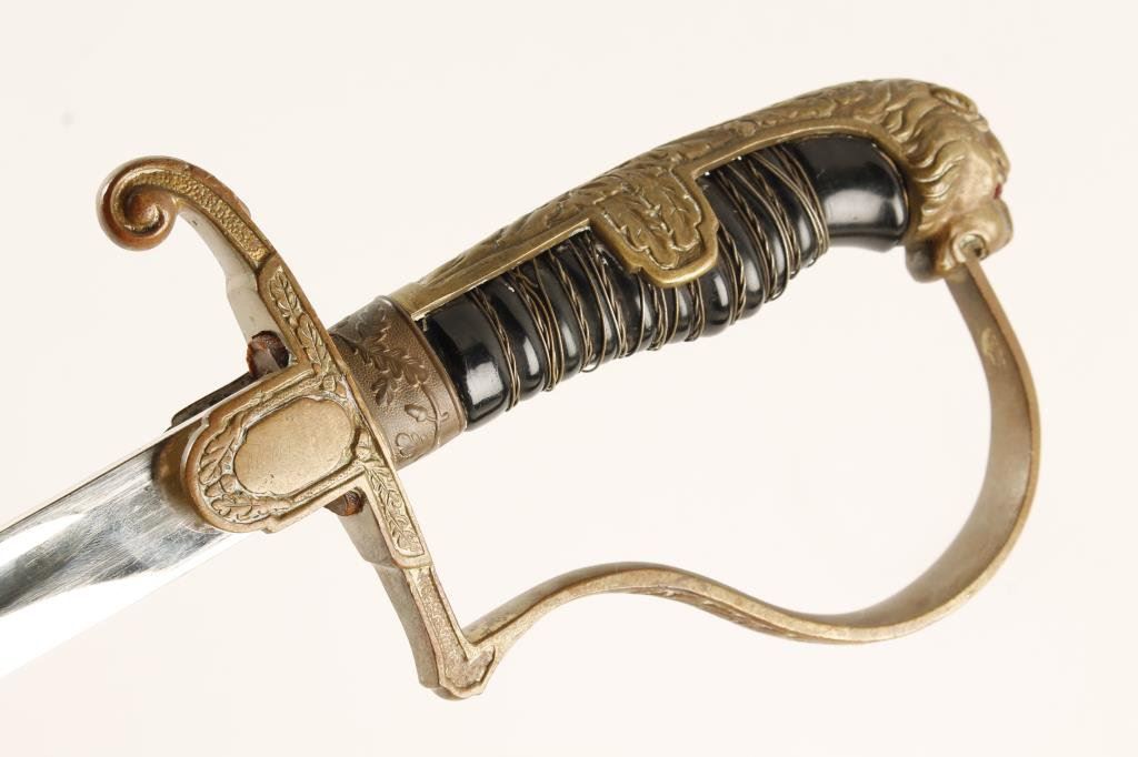 Lot 3231 Nazi Officer’s sword with scabbard. Lion head pommel with jeweled eyes. Go