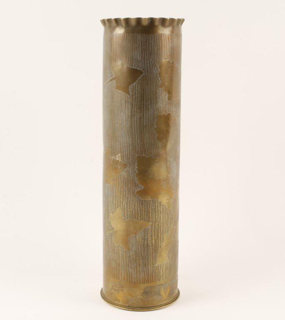 Trench art brass shell with date 1918, approximately 11.5” tall. Est.: $75-$125.