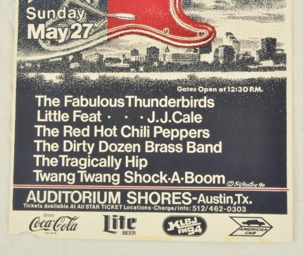 Auditorium Shores, Austin, TX. May 27, 1990. Artist: Sam Yeates. 11" x 17". Lower left corner damage.