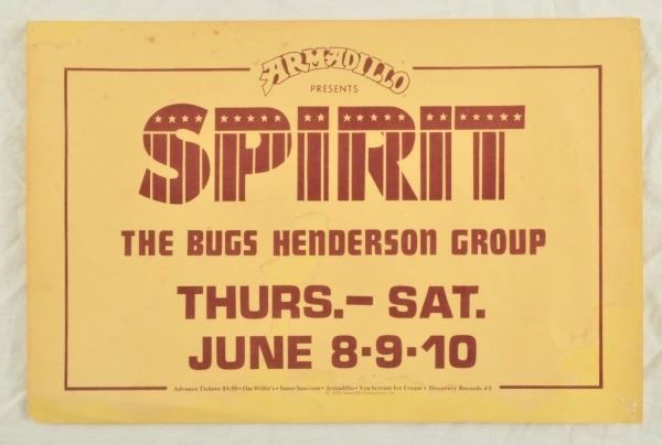 Spirit, The Bugs Henderson Group, AWHQ, Austin, TX. June 8-10, 1978. Artist: Unknown. 11" x 17"
