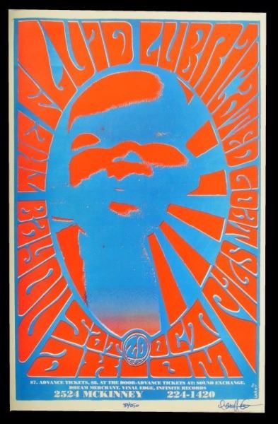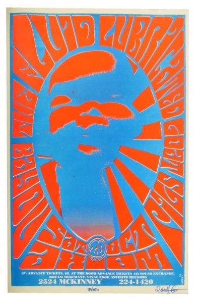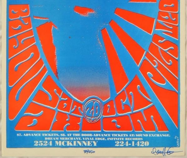 The Axiom, Houston, TX. October 20, 1990. Artist: Lardy. 11" x 17".Psychedelic Print 39/250.