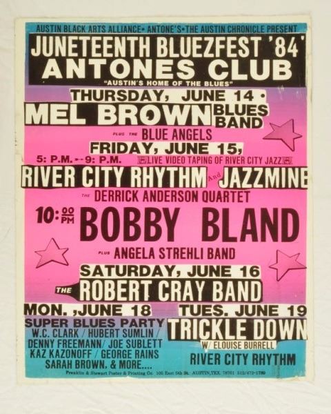Bluezfest Austin Concert Poster. Antones, Austin, TX. June 14-19, 1984. Franklin & Stewart Poster & Printing Co. 22" x 28"
