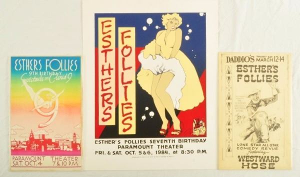 Three Esther Follies Posters. Paramount Theater, Austin, TX. October 4, 1985. Linen backed. 10-1/2" x 16-1/2"