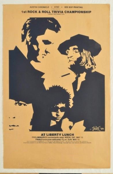 Lot 335 1st Austin Rock N Roll Trivia Championship Poster