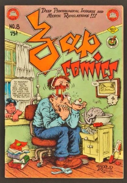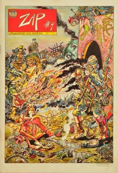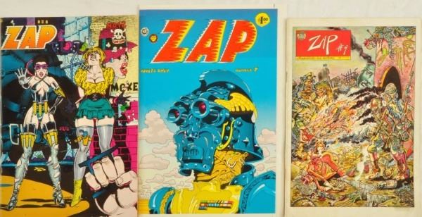 ZAP Comics #8, 1975, Artists: Crumb, Shelton, Wilson, Williams, Moscoso, & Spain; ZAP Comics #9, 1975, Artists: S. Clay & Wilson; ZAP Comics #12, 1989, Artists: Spain, and R Williams.