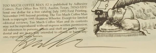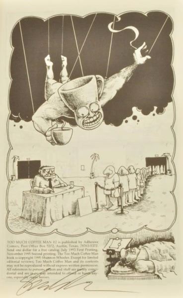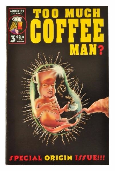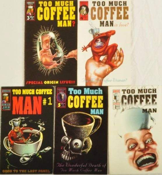 Complete series. Too Much Coffee Man #1, 1993, Artist: Shannon Wheeler. Too Much Coffee Man #2, 1995, Artist: Shannon Wheeler. Signed. Too Much Coffee Man #3, 1996, Artist: Shannon Wheeler. Too Much Coffee Man