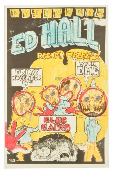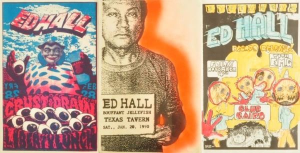 3 Ed Hall Austin Concert Posters. One of a kind. Texas Tavern, Austin, TX. January 20, 1990. 11" x 17". Liberty Lunch, Austin, TX. February 28, 1992. Artist: Jason Austin. 11" x 17". Record Release, Club Cairo. Artist: Malice. 11" x 17".