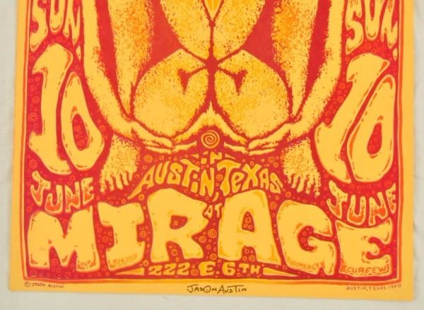 Thee Hypnotics, The Backroom, Austin, TX. March 27, 1992. Artist: Jason Austin. 11" x 17". Psychic TV Signed Poster, The Mirage, Austin, TX. June 10, 1990. Artist: Jason Austin, Famous Austin punk artist. 11" x 17"
