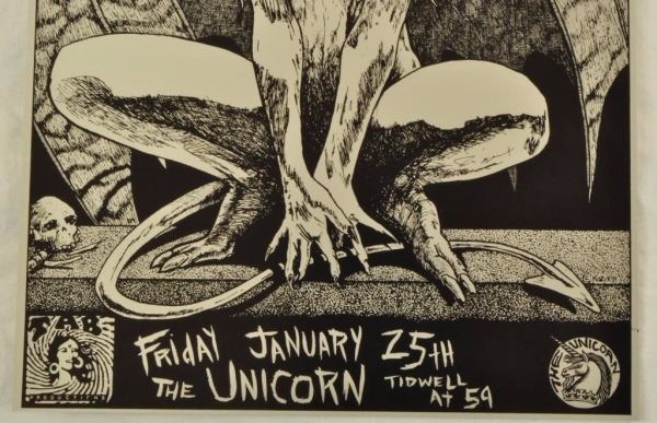 Cover proof. The Unicorn, Houston, TX. January 25, 1991. Artist: Frank Kozik. 11" x 19" Early Rare Frank Kozik. One of a kind.