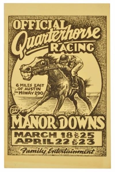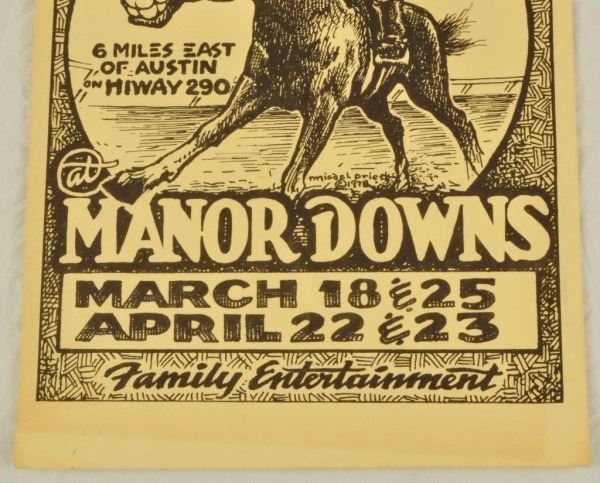 Manor Downs, Austin, TX. March 18&25 and April 22&23, 1978. Artist: Micael Priest. 11-1/2" x 17-1/2"