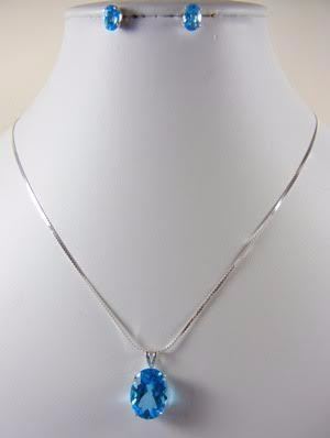 Lot 27 Gorgeous Blue Topaz Pendant with Matching Earrings