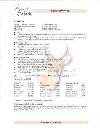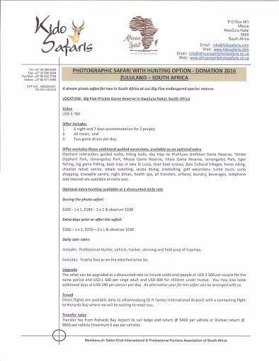 6 nights and 7 days dream photo safari with optional extra hunting at discounted daily rate.