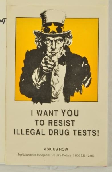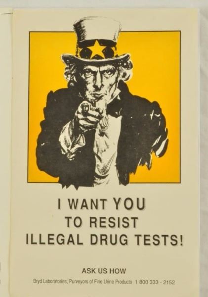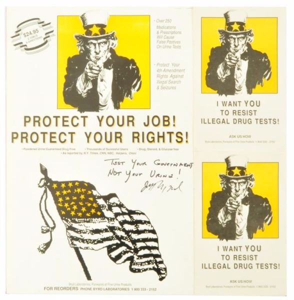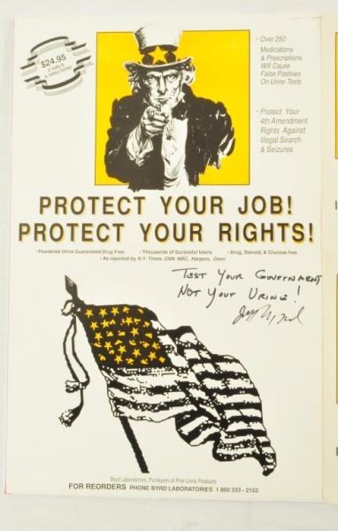 "Test Your Government Not Your Urine! Jeff Nightbyrd". 1990s. 8-1/2" x 11"