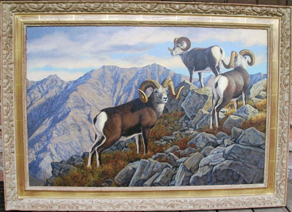 Donation: This beautiful original oil painting the “Stone’s” by Brent Todd - 2000-2001 Living Legend of Wildlife Art depicts the beautiful Stone’s sheep. A love of the outdoors, nature, and hunting led Brent to painting what he loves most, wildlife. Brent believes in not only capturing a portrait of the animal itself, but also depicting it in the beauty of its natural habitat.