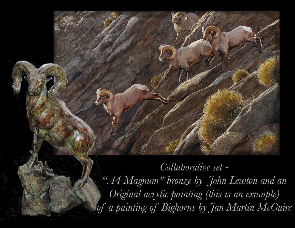 Lot 9 COLLABERTIVE SET - BRONZE & ORIGINAL PAINTING - BIGHORN SHEEP