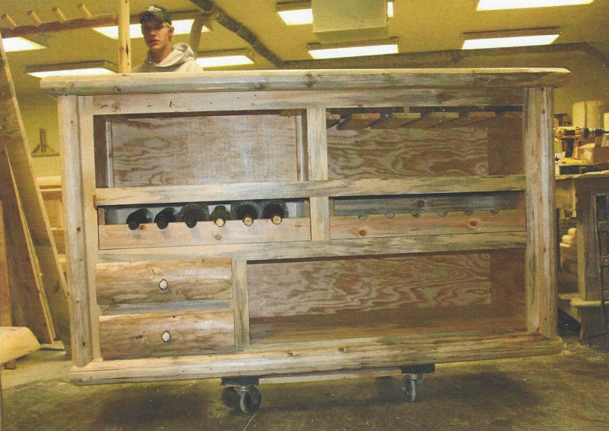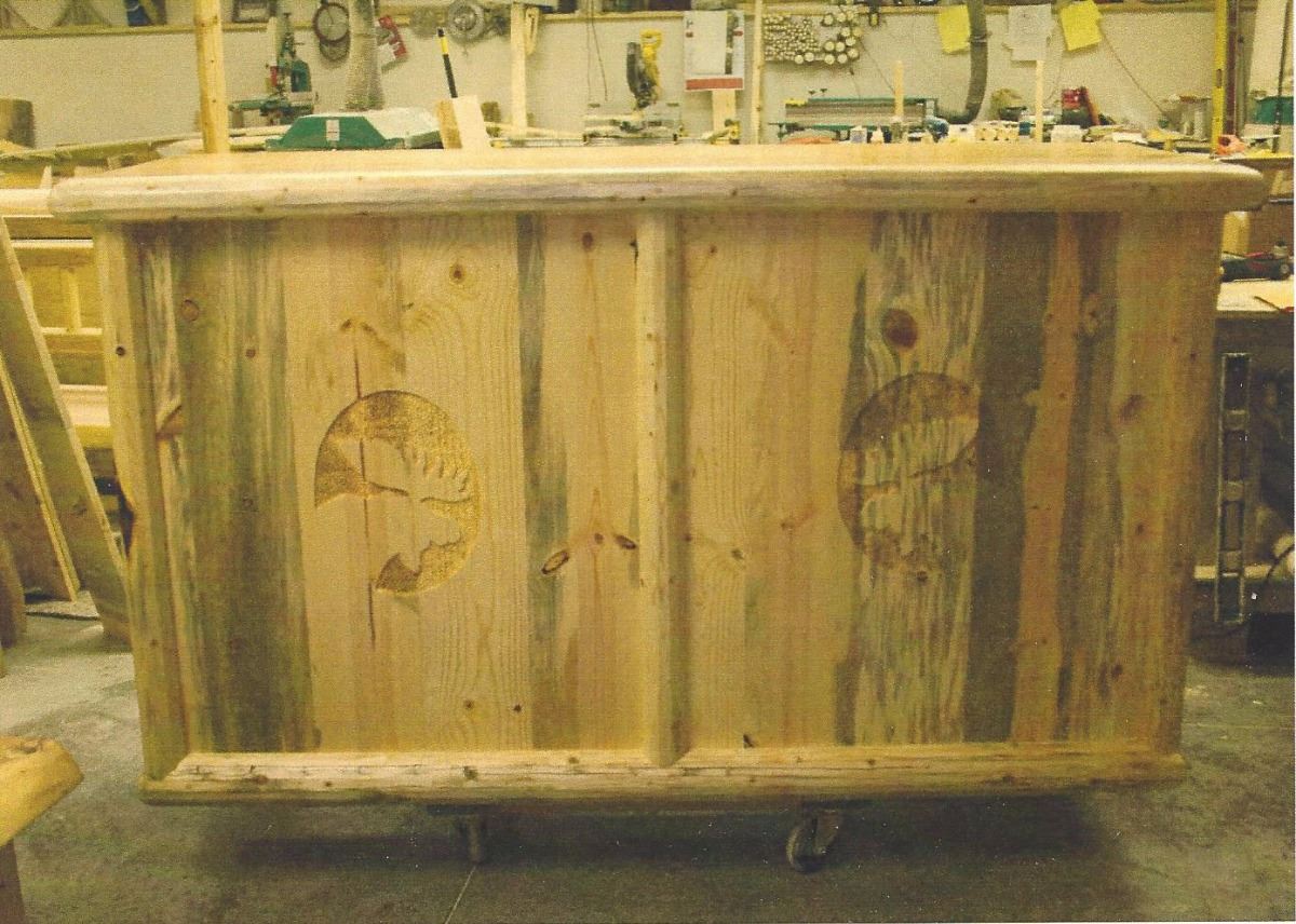 Donation: This beautiful log bar is the perfect fit for the entertainer’s home. The log style has a beautiful finish. Accented with a wine rack, which holds up to twelve bottles and drawers provide ample storage space.