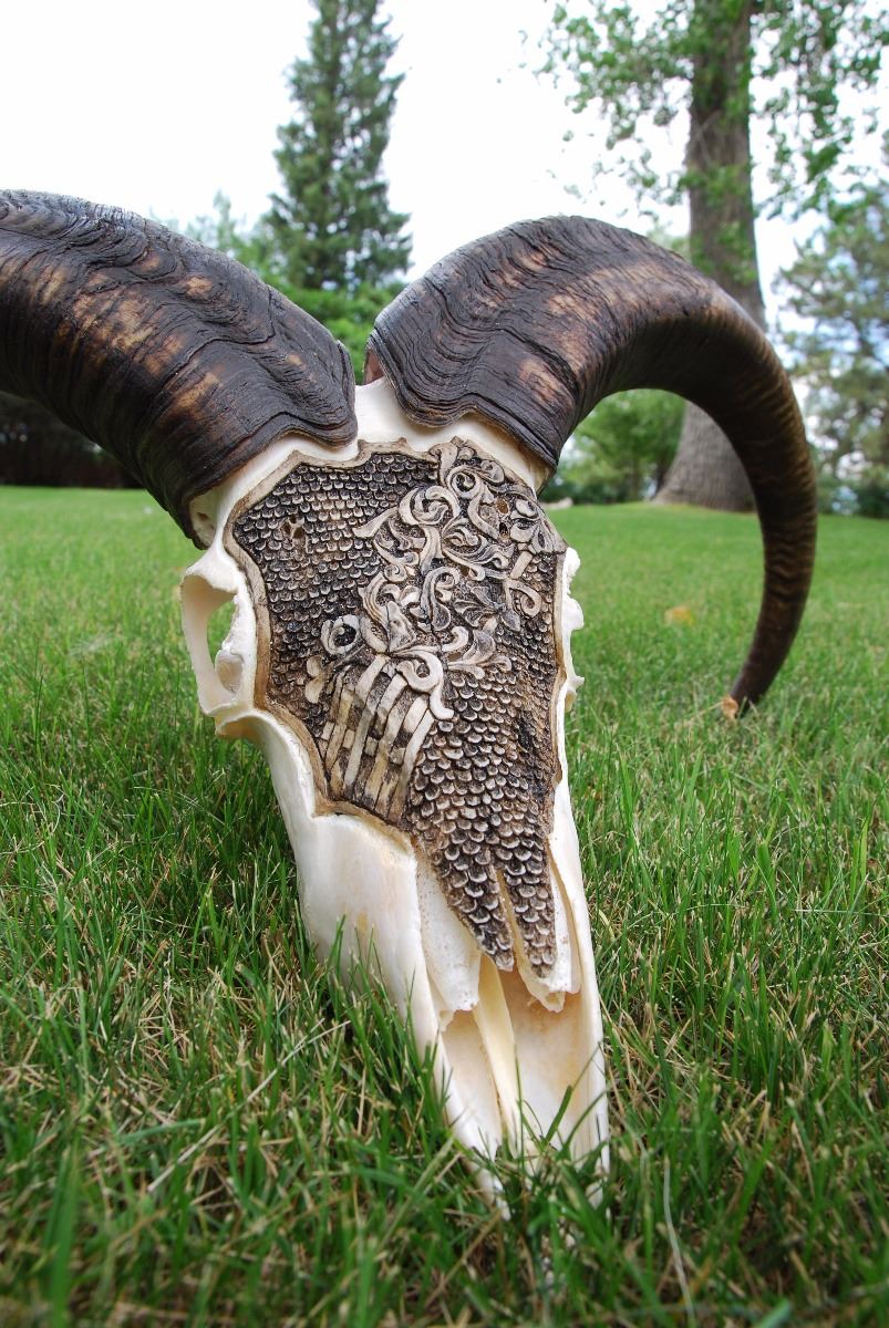 “WILD SHEEP AOUDAD SKULL CARVING”