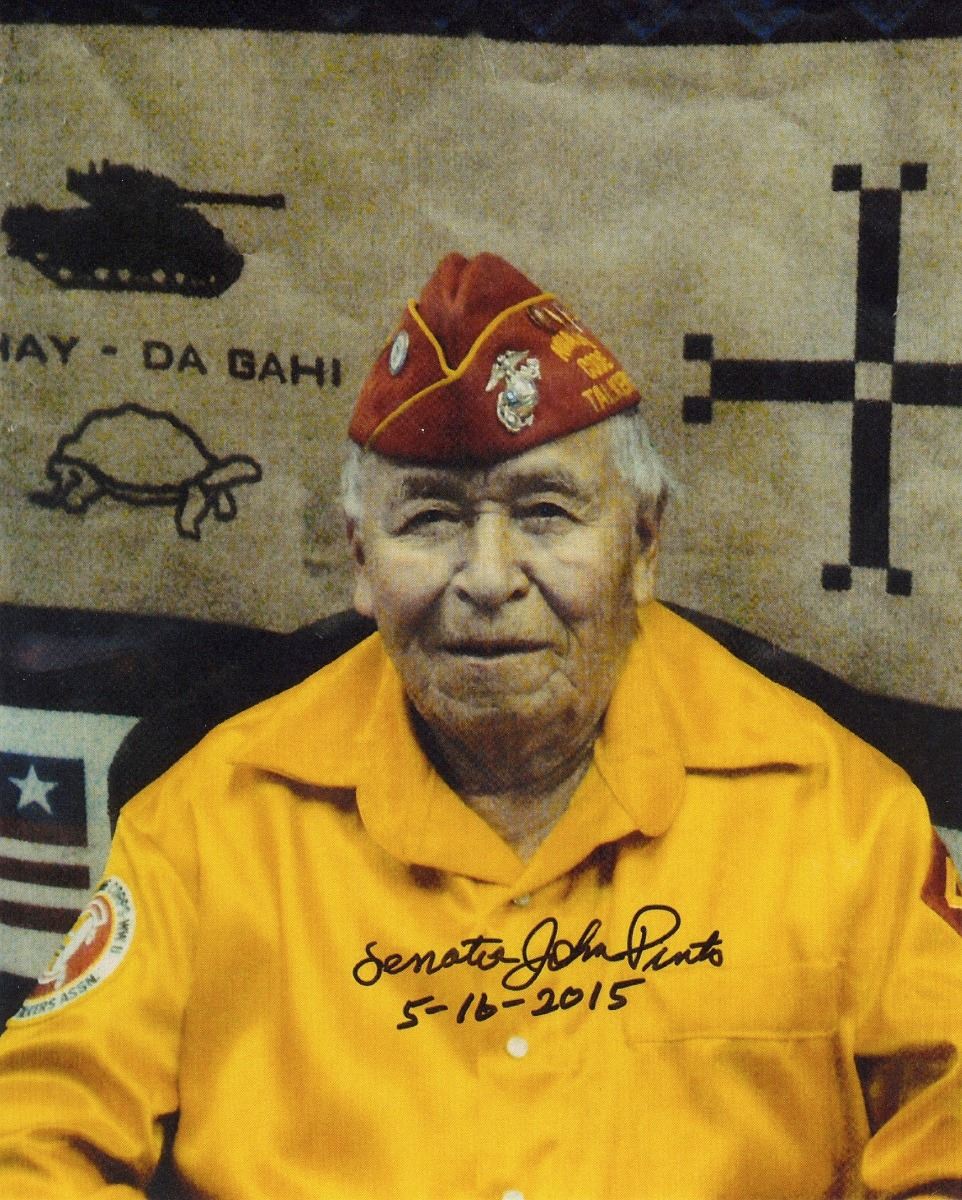 Donation: Autographed Code Talker Book donated by: Senator John Pinto (New Mexico Senator and WW II Code Talker) A true piece of American history donated by Senator Pinto in support of today’s Warrior’s. Senator Pinto was born and raised on the Navajo Nation in the Southwestern United States. He is currently one of only two surviving Code Talkers. It was the Navajo Code Talkers that altered the course of World War II and ultimately history itself. Their code was never broken, nor was their dedication to protect freedom.