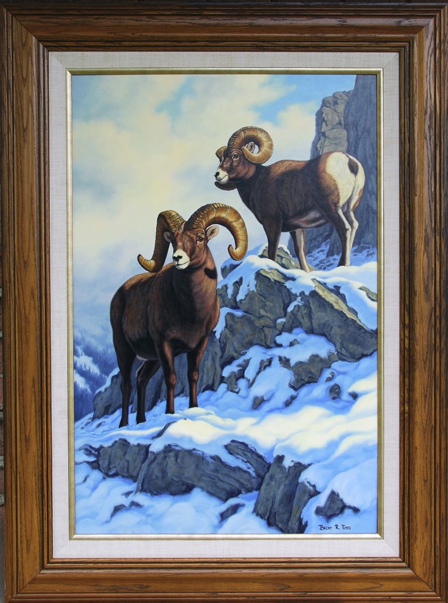Donation: These four beautiful original oil paintings by Brent Todd - 2000-2001 Living Legend of Wildlife Art depicts the majestic bighorn. A love of the outdoors, nature, and hunting led Brent to painting what he loves most, wildlife. Brent believes in not only capturing a portrait of the animal itself, but also depicting it in the beauty of its natural habitat.