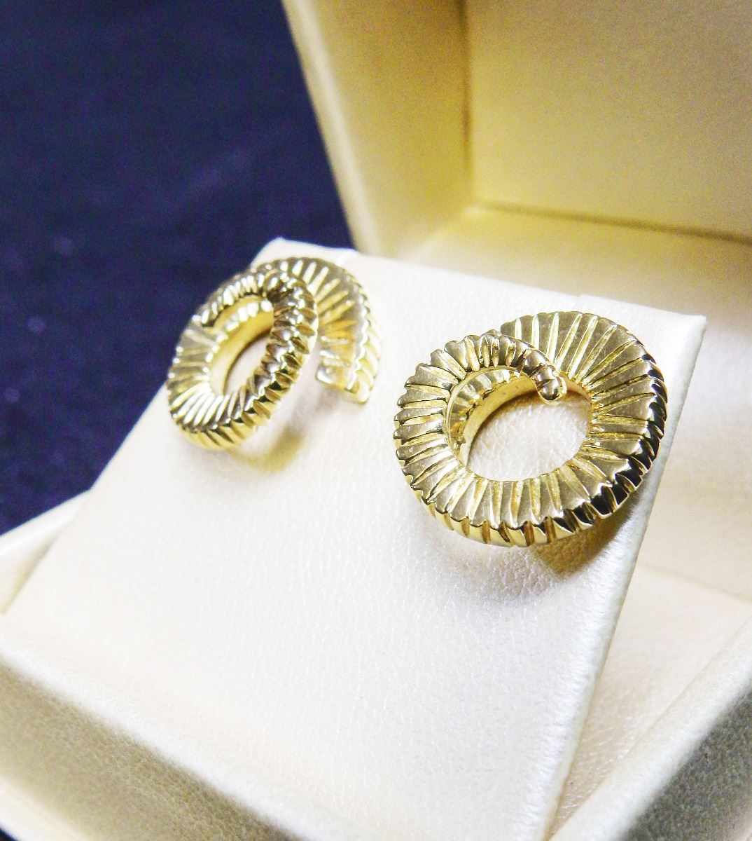 Donation: This is a beautiful 14K solid gold custom made “full body” of a wild bighorn sheep. It has great detail of this magnificent wild animal. Accented with 0.04 carats of sapphires in its eyes. This piece can also be made in white gold. The earring are made of 14K solid gold full curl horn ladies earrings in yellow gold. These earrings are custom made and can be made in white gold