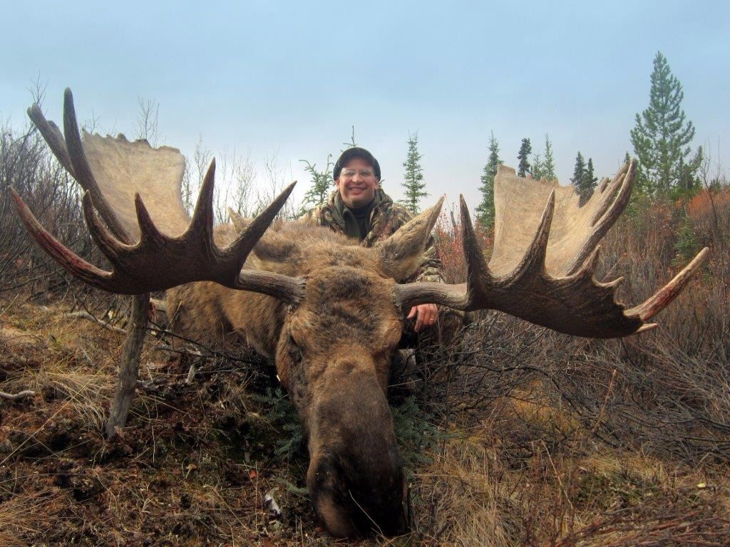 Special note: Dean, Lori and their three children began outfitting in the Riding Mountains in Manitoba in 1988. After owning several hunting outfits over the years, we are very proud to be owners of Concession #14 in the Yukon. 2016 will be our 13th year in the Yukon and 9th year operating Trophy Stone Outfitting. Alaska/Yukon moose are the largest moose in the world and are abundant throughout the hunting area, standing over 7 feet at the shoulder and weighing over 1,800 pounds. It is not uncommon to see bulls with antler spreads over 65 inches. A portion of the proceeds of this hunt will go to the Yukon Outfitters Association.