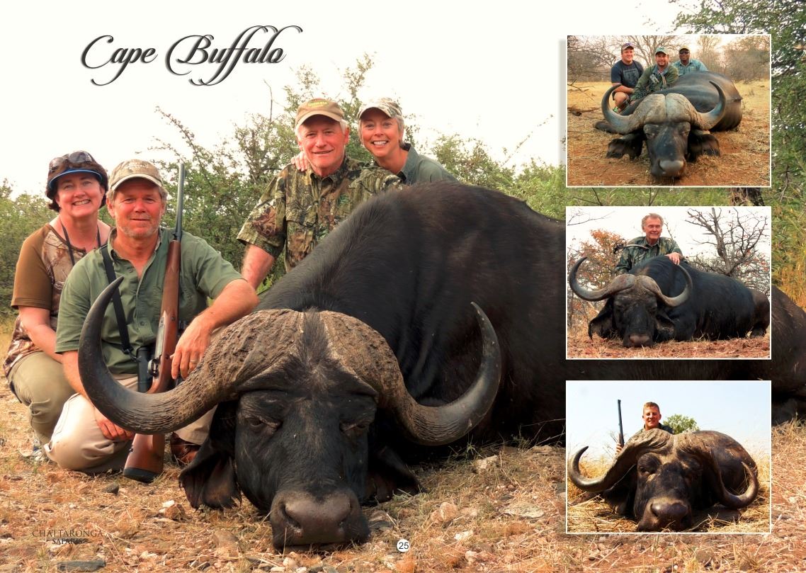 14-day 1x1 hunt for one hunter and one non-hunter in Zimbabwe - includes trophy fees 1x leopard and 1x Cape buffalo, any size. Method of take is rifle or bow. This hunt is available April through October, 2016 only and may be upgraded to include additional species at current price list. Additional hunters and non-hunters are welcome at $1,200/day for hunters and $400/day for non-hunters. Transportation during the hunt is mostly by vehicle and foot with hunting done using blinds. This donation includes trophy prep, transportation to shipper, round trip transportation between Victoria Falls and the hunt concession, chalet accommodations and all meals. Not included are dip & pack service and gratuities. DALLAS SAFARI CLUB THANKS CHATTARONGA SAFARIS FOR THIS 100% DONATION. Philip Kruger, PO Box 32, Alldays, Limpopo 0909 RSA, 011 27 83 305 5371, chattaronga@gmail.com, www.chattaronga.co.za. Booth #1221