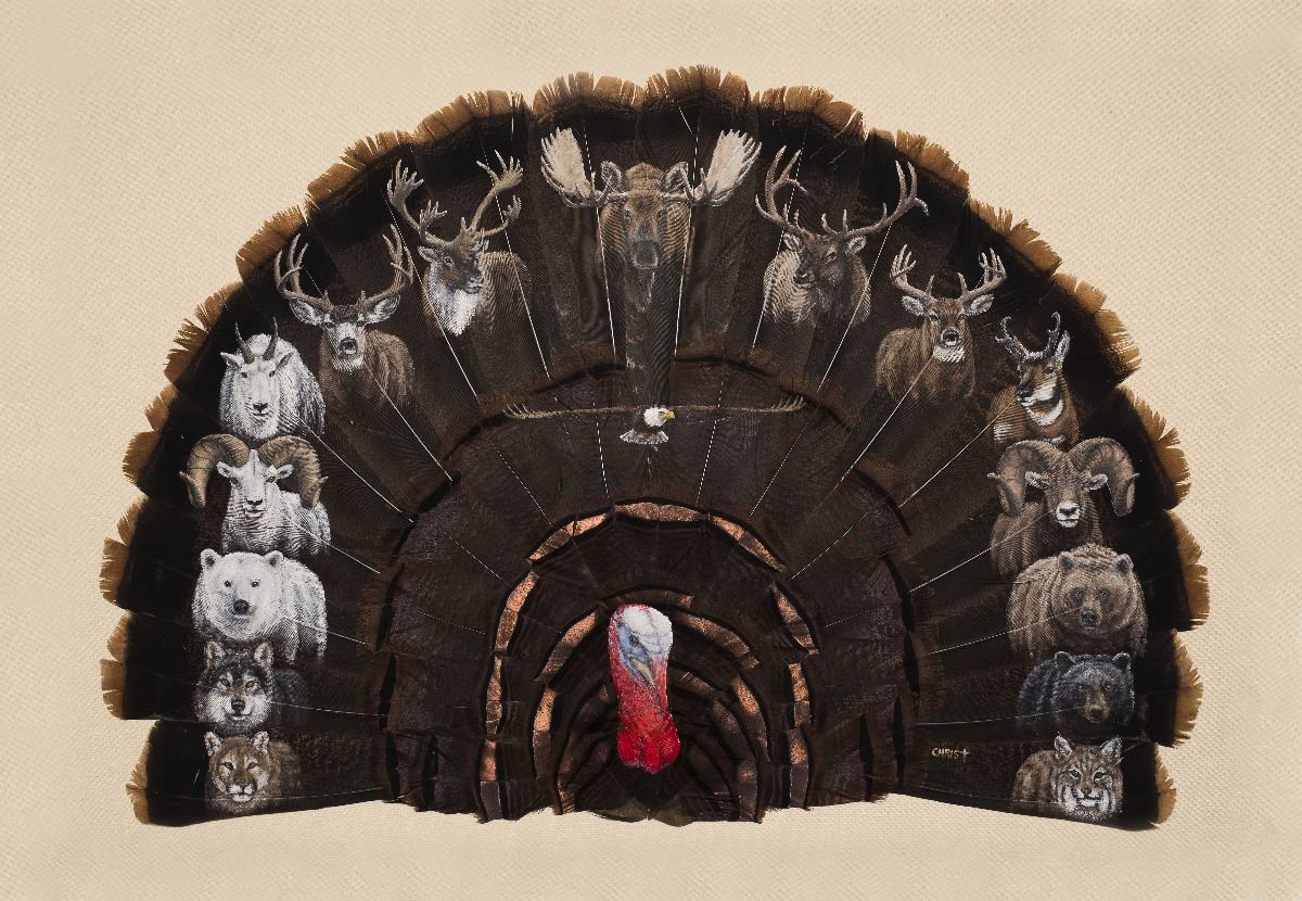 Raised on a Berks County dairy farm at the foot of the Blue Ridge Mountains, Dan Christ was a hunter, bird watcher, and nature photographer since a teenager. Dan has been a great supporter of the Eastern Chapter for many years. This unique piece titled “North American Wildlife” depicts a variety of North American Wildlife painted on a fanned turkey tail. This would be a great addition to your artwork for your Game room or Office. Thanks Dan for your continued support and this 100% donation.