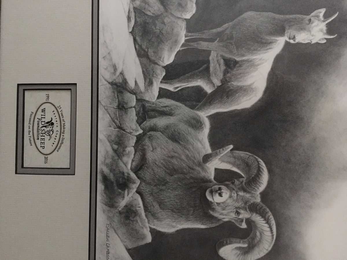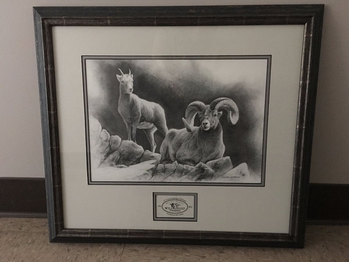 Dallen's artwork can be found all over the country and both he and his father Hayden have been great supporters of the Eastern Chapter over the years. While planning for our 25th year anniversary we wanted to have a special invite sent out to all of our members and past guests. Dallen Lambson generously offered to sketch a sheep scene which captures the essence of what our organization is trying to enhance and protect. This matted and framed original sketch is truly an original work of art as it was the template created by Dallen for the 25th Year Anniversary Invite. Dallen Lambson currently resides in Pocatello, Idaho with wife, Malory, and their six children. Much of his original work is showcased in art galleries in Kalispell, Montana and Jackson Hole, Wyoming, but his work can also be found in Cabela's, Bass Pro Shops and Sportsmen's Warehouse across the country. He was the Mule Deer Foundation's Artist of the Year in 2012, and will be featured as the Rocky Mountain Elk Foundation's 2016 Artist of the Year. Many thanks to both Dallen and Hayden for their great support! This artwork is truly one of a kind as it celebrates our 25 Year Anniversary!