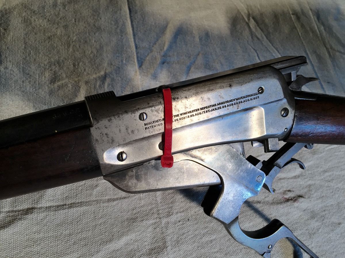 WINCHESTER 1895 SPORTING RIFLE, 24" ROUND BARREL IN 35 WCF. REAR SIGHT REPLACED, #40586, MADE IN 1903