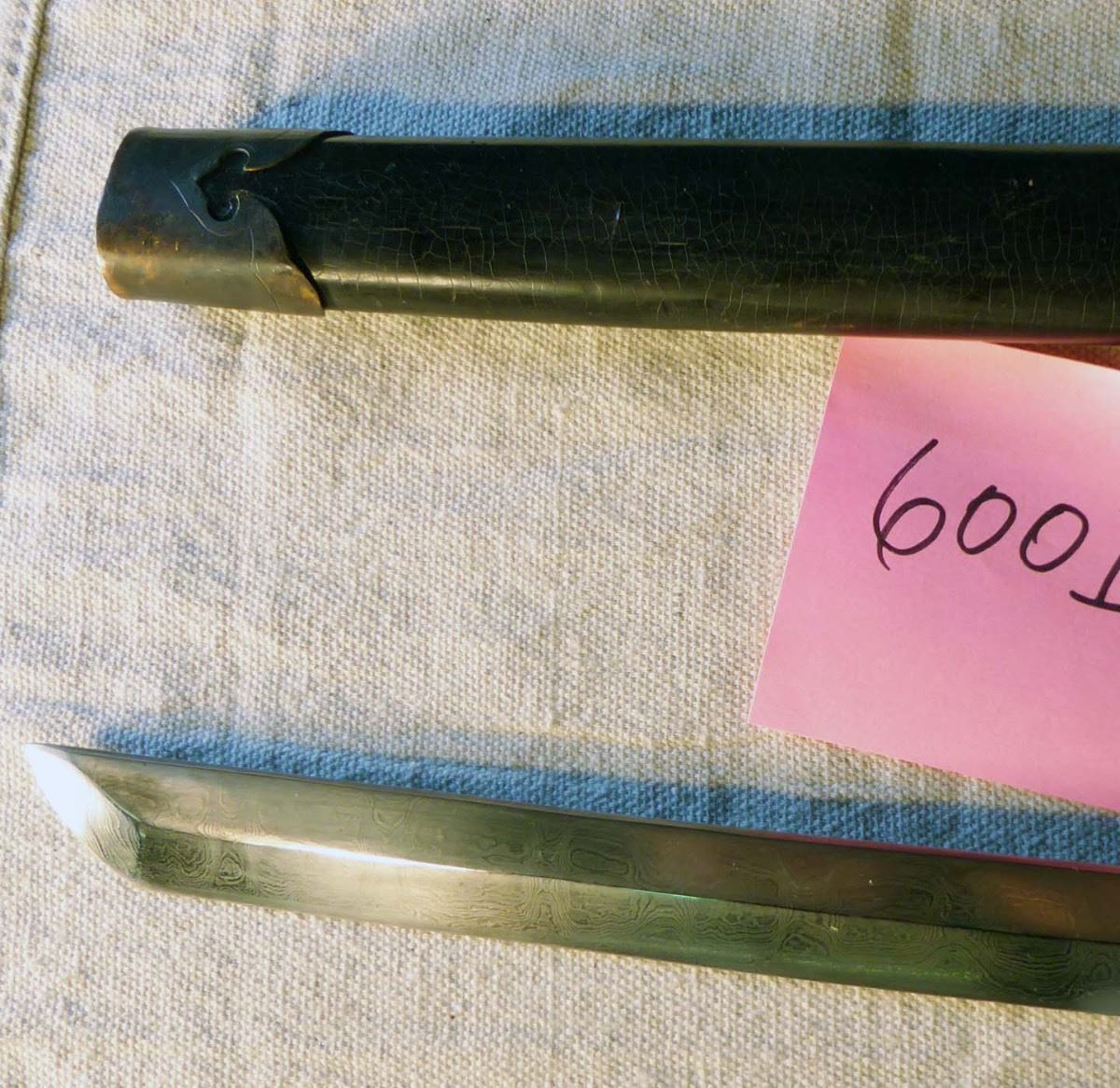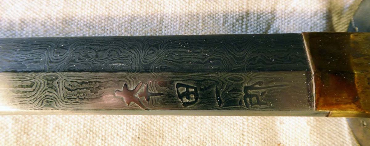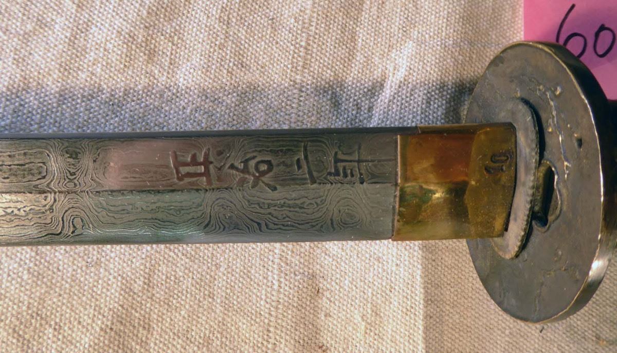 TWENTIETH CENTURY SECOND QUARTER AUTHENTIC SAMURAI SWORD 29 1/2" DAMASCUS STEEL BLADE WITH RAISED CHARACTERS