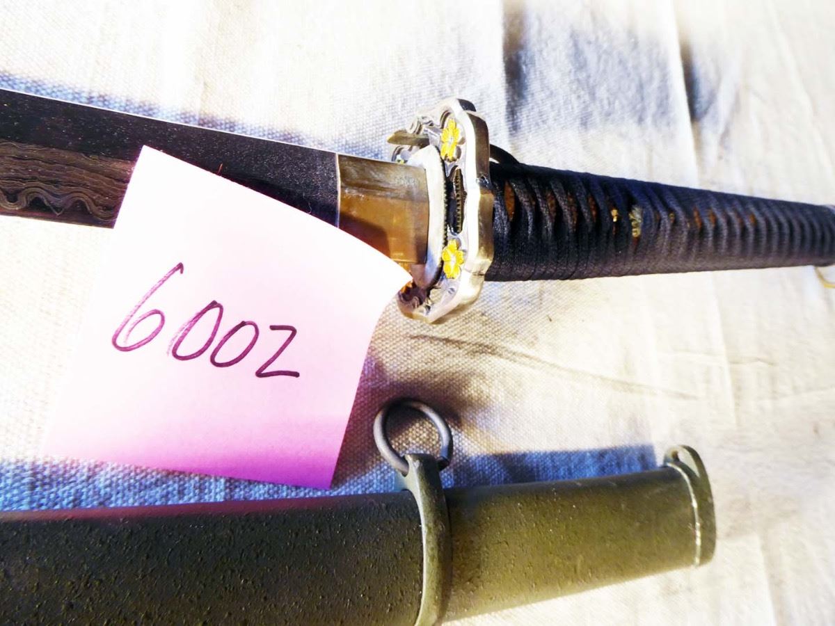 TWENTIETH CENTURY SECOND QUARTER AUTHENTIC SAMURAI SWORD 27 7/8" DAMASCUS STEEL BLADE. NUMBERED 66881