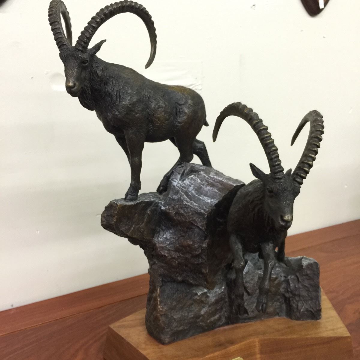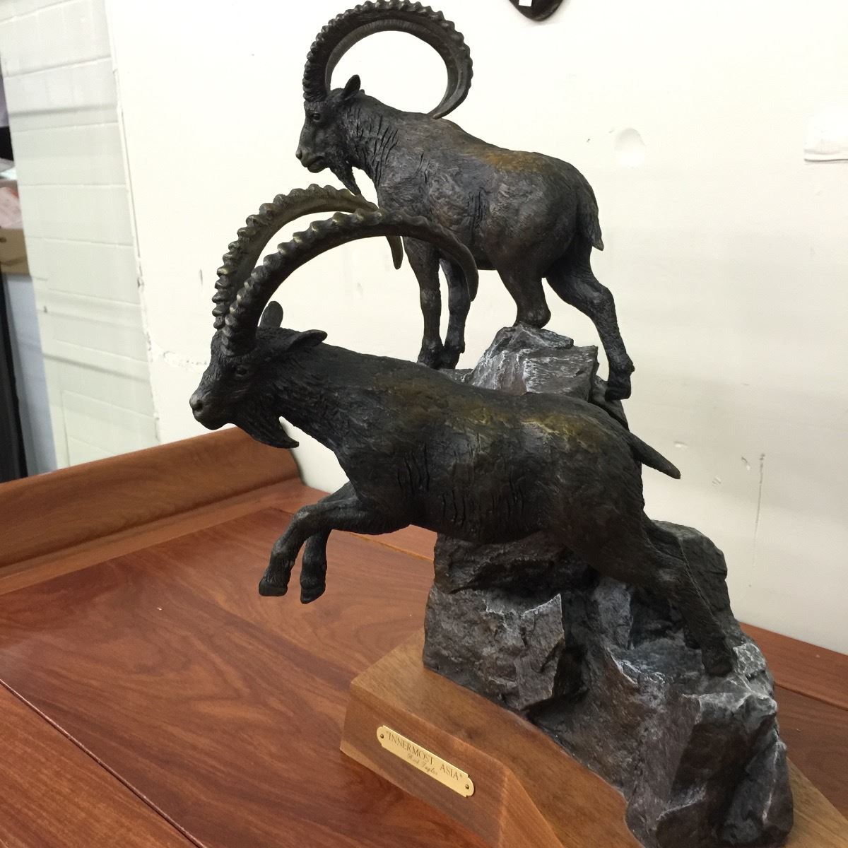 BRONZE STATUE OF TWO AFRICAN IBEX, BY RICK TAYLOR, 16.5'' H