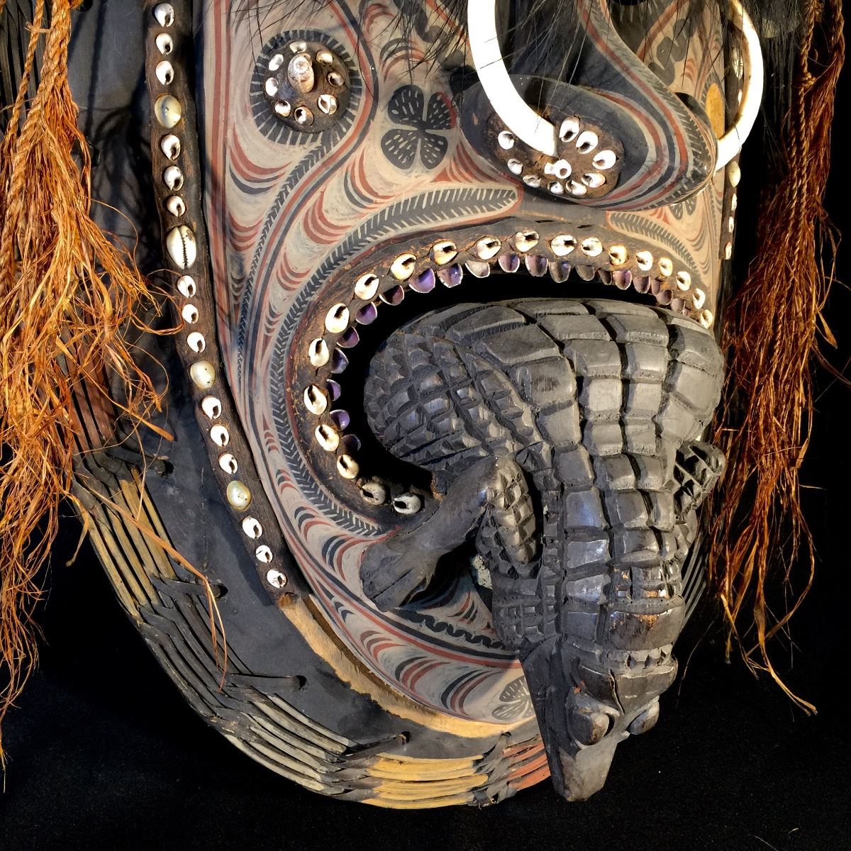 Lot 42 NEW GUINEA, EXCEPTIONALLY CRAFTED CEREMONIAL MASK FEATURING WARTHOG TUSKS, CONCH SHELLS, AND