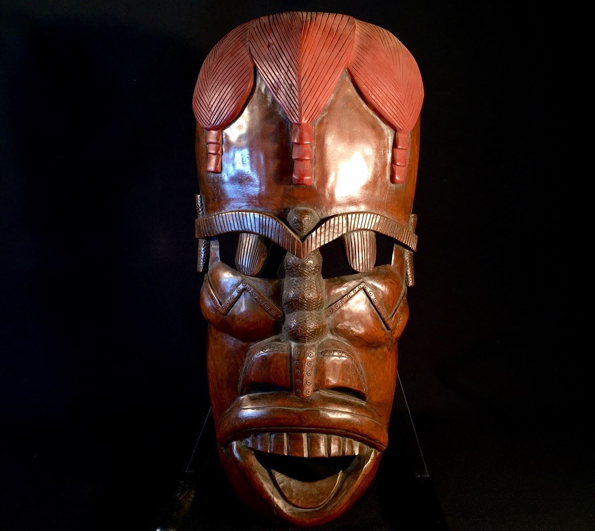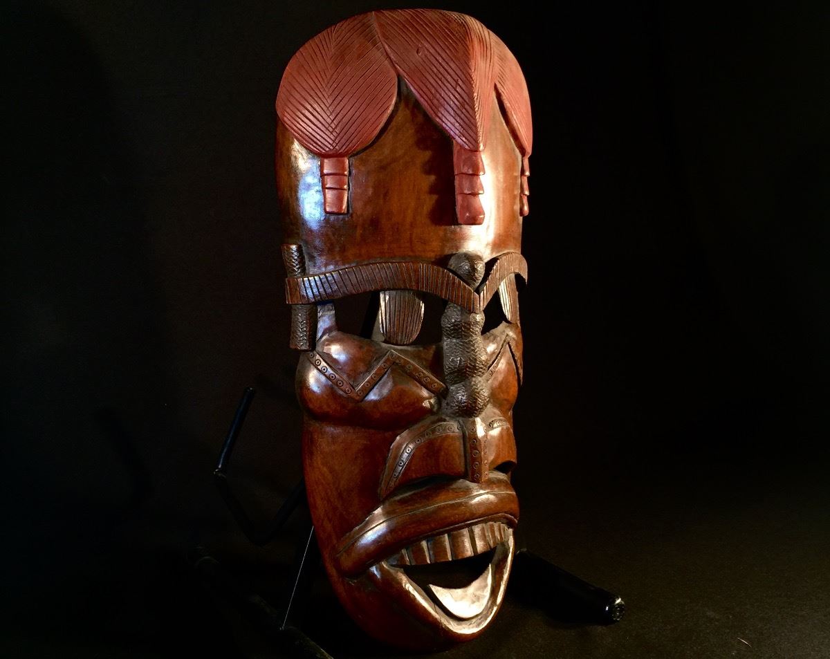 Lot 45 NEW GUINEA HAND CARVED, WOODEN CEREMONIAL STYLE MASK, 23'' H