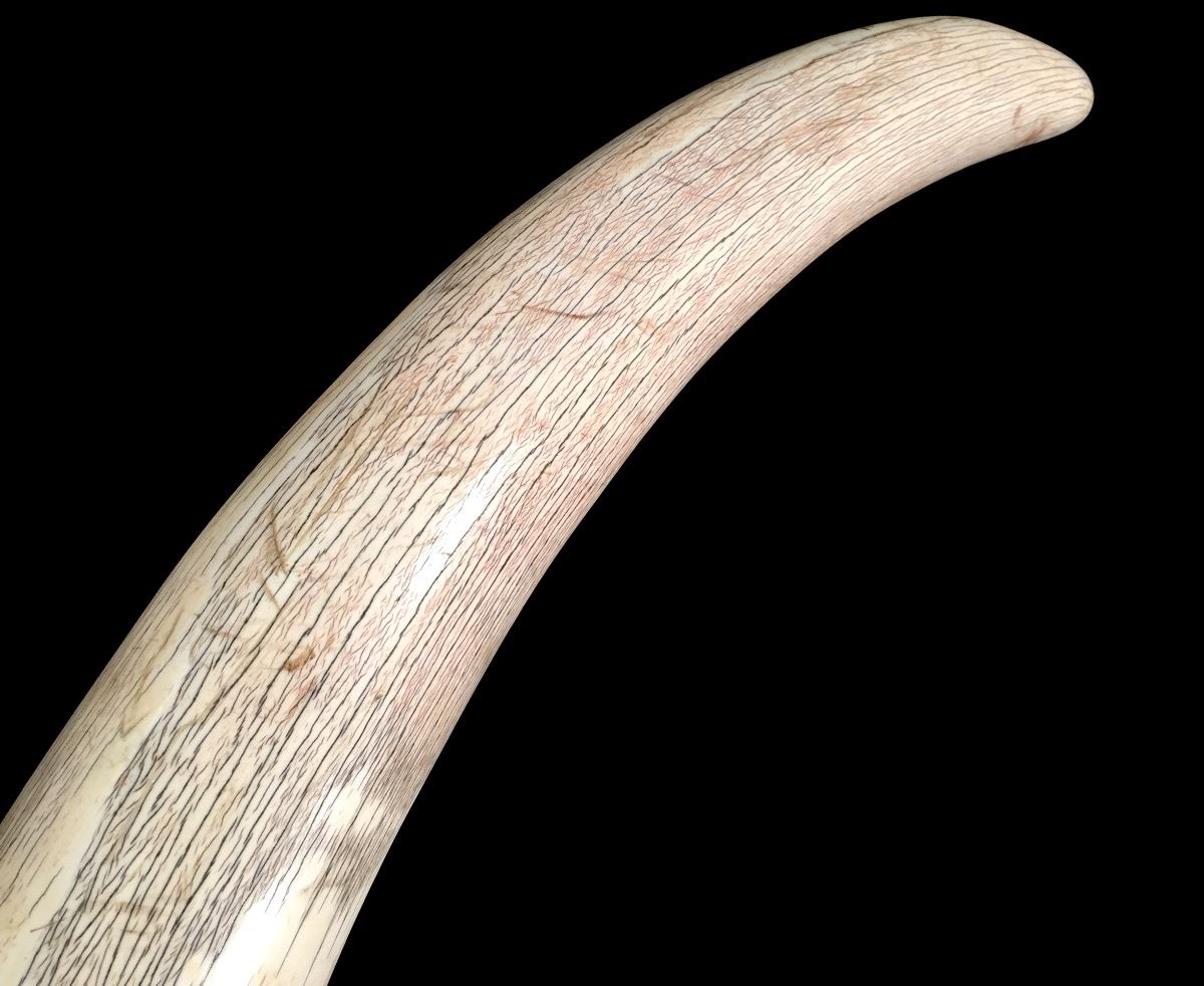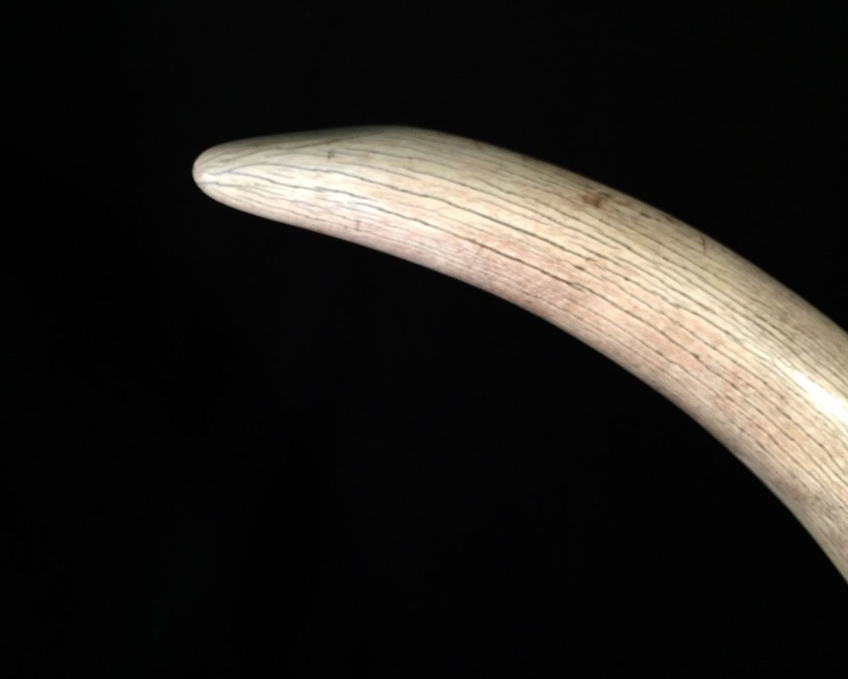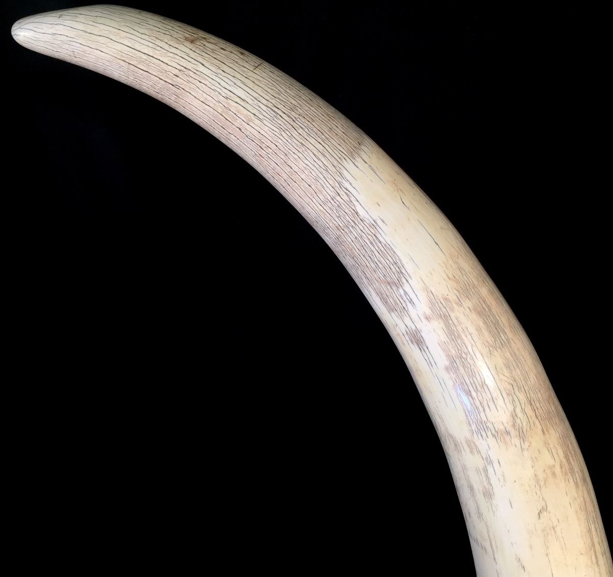 Lot 48 ELEPHANT IVORY TUSK ON CUSTOM GRANITE/OAK BASE, TUSK LENGTH APPROX. 60" LONG**NOT EXPORTABLE**