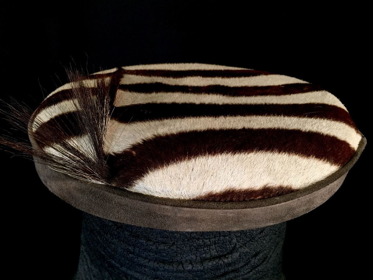 Lot 50 ELEPHANT FOOT STOOL WITH ZEBRA SKIN TOP, 21'' TALL **NOT EXPORTABLE**