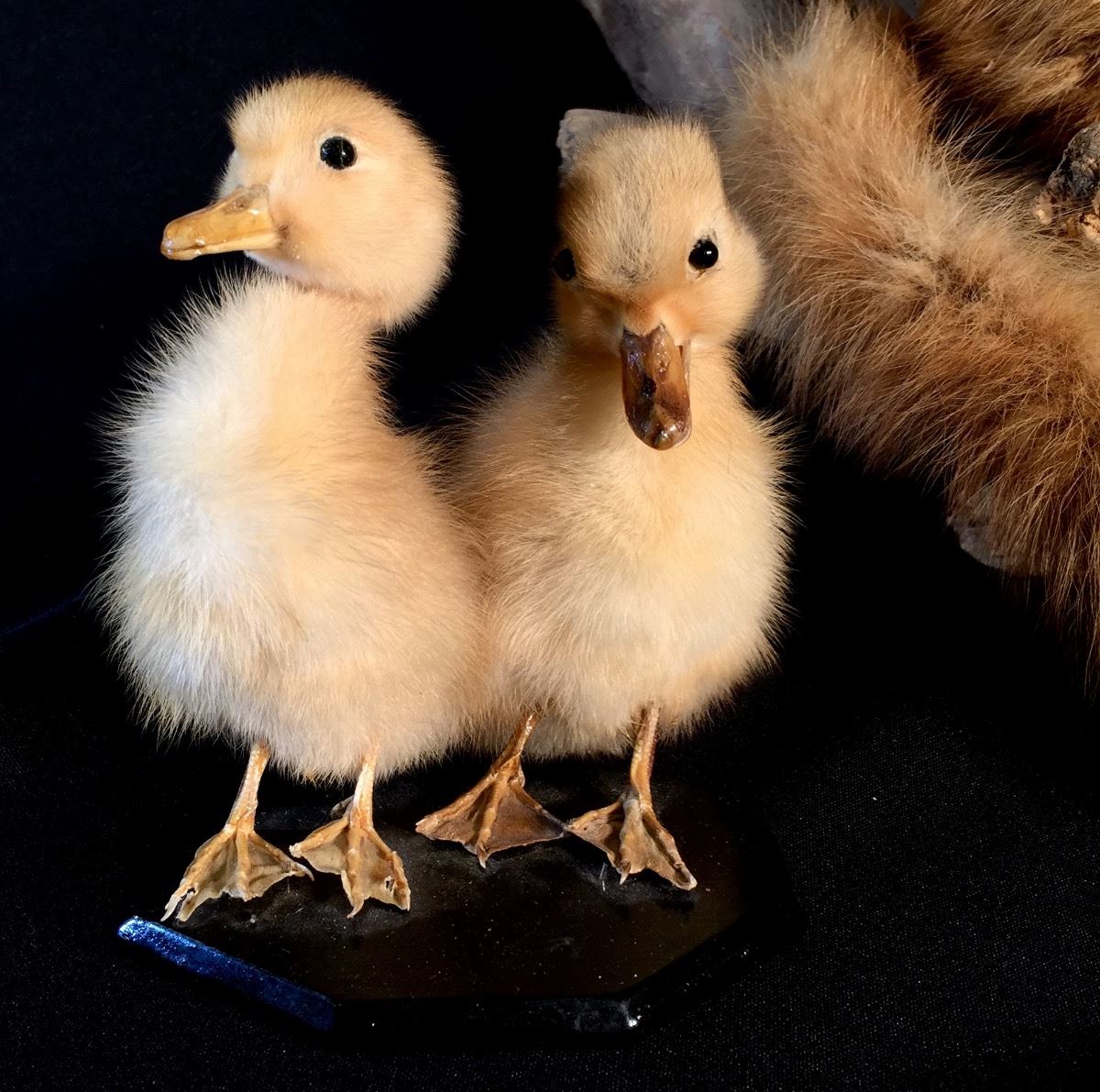 MARTEN WINTER PHASE FULL BODY MOUNT ON WOOD DISPLAY WITH PAIR OF MALLARD DUCKLINGS