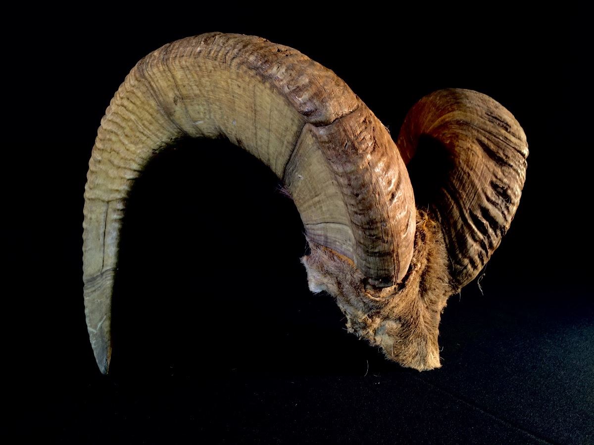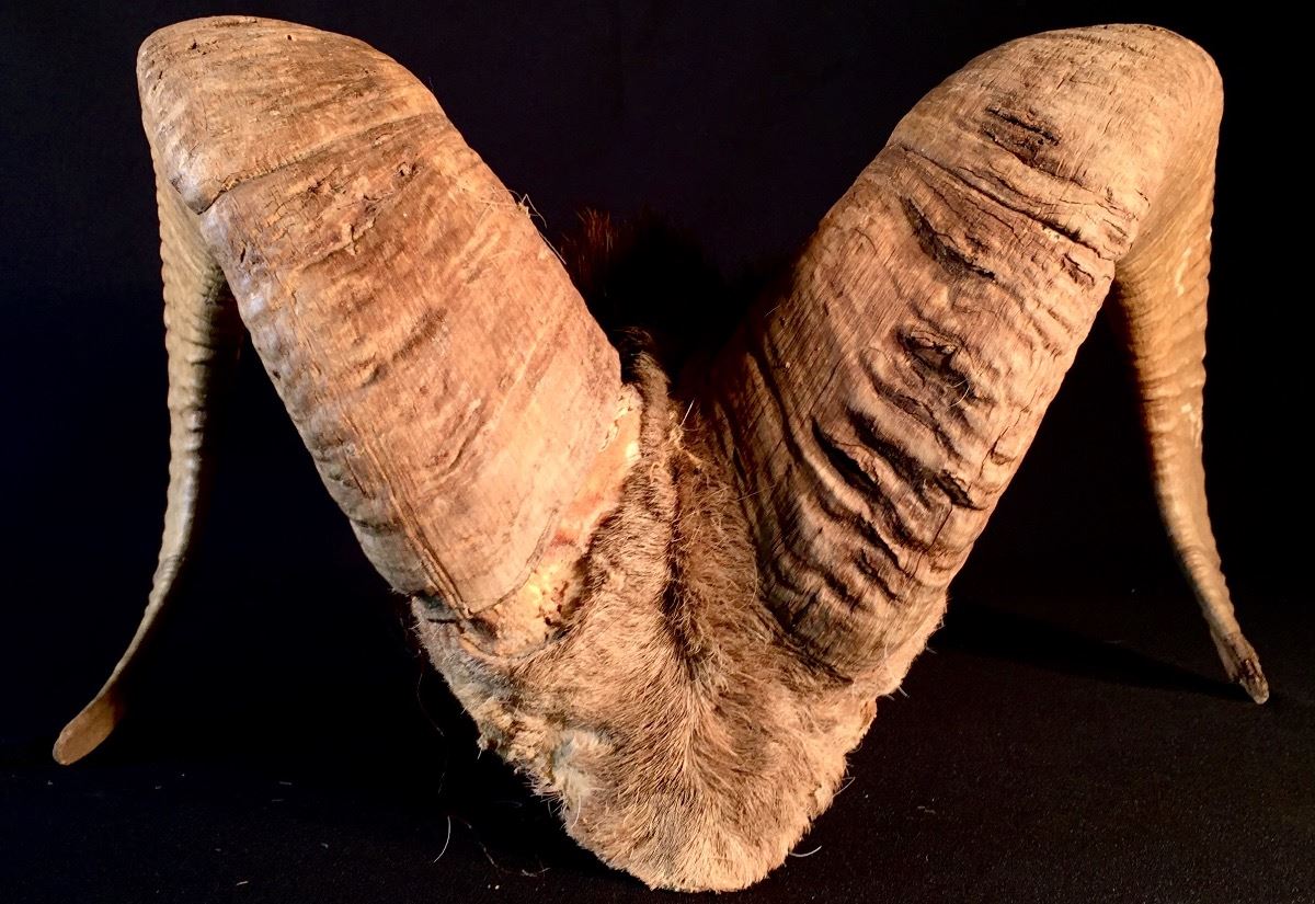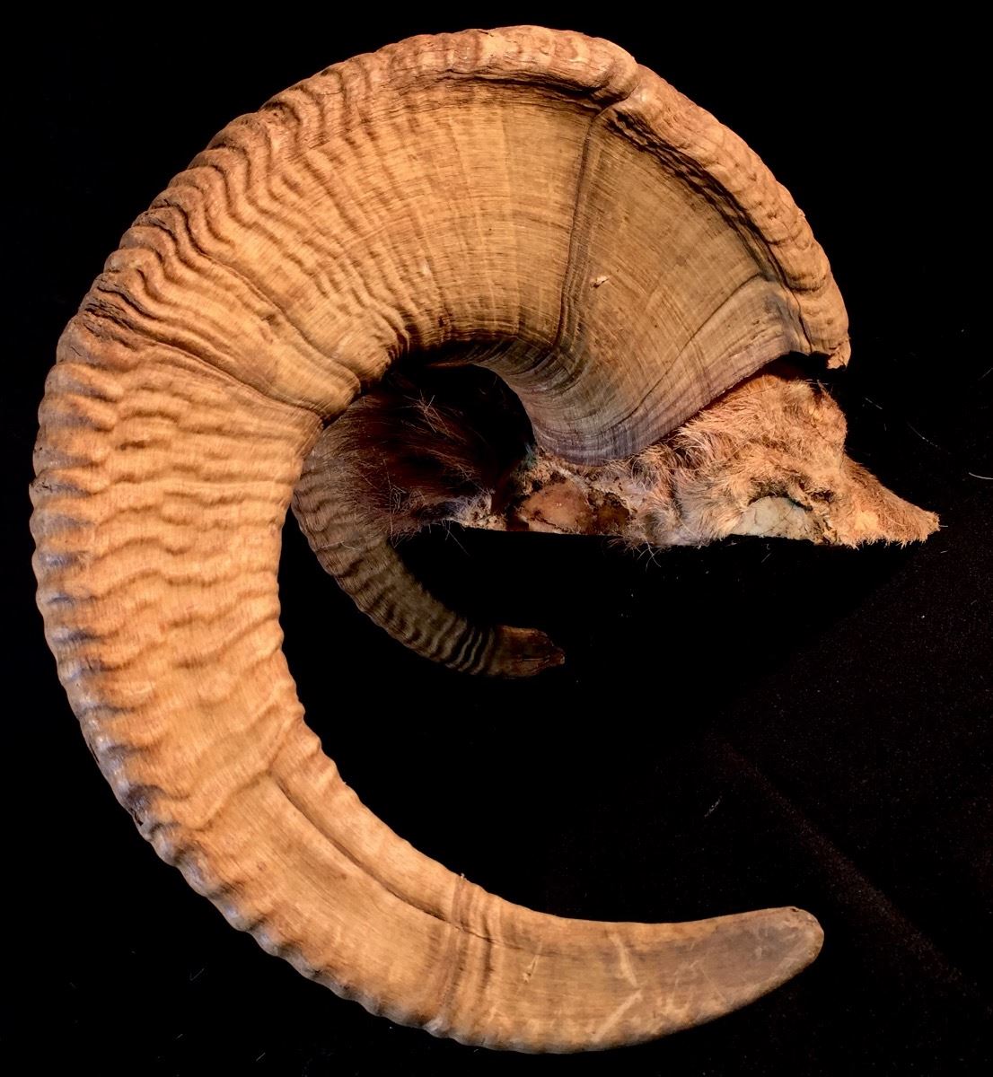 Lot 83 3/4 CURL ROCKY MOUNTAIN BIG HORN SHEEP HORNS, 30'' CURL, PINNED AND PAPERED