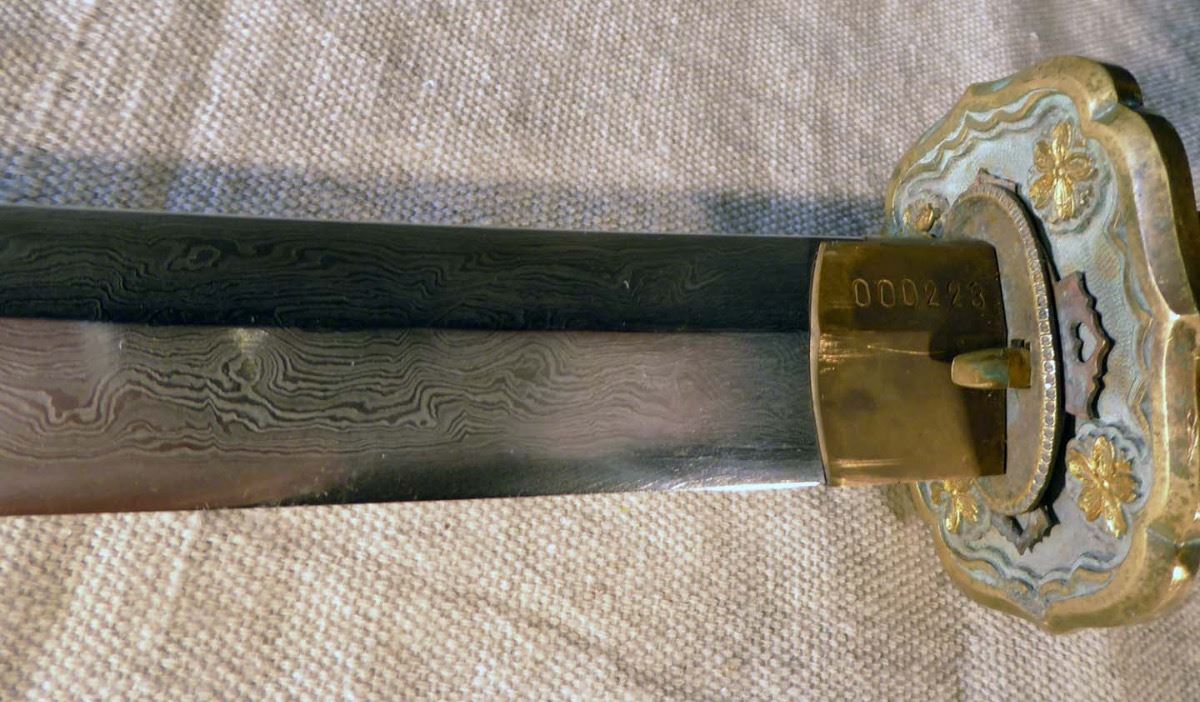 TWENTIETH CENTURY SECOND QUARTER AUTHENTIC SAMURAI SWORD 29 7/9" DAMASCUS STEEL BLADE, NUMBERED 000223