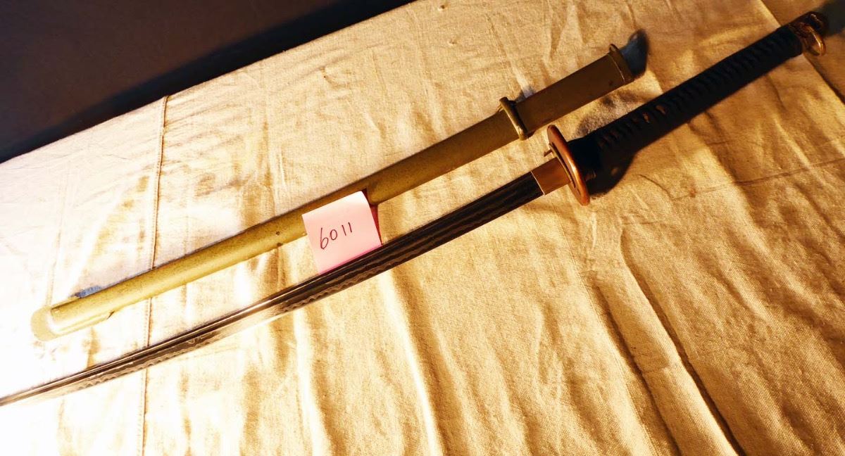 TWENTIETH CENTURY SECOND QUARTER AUTHENTIC SAMURAI SWORD 28 3/16" DAMASCUS STEEL BLADE, NUMBERED 00118